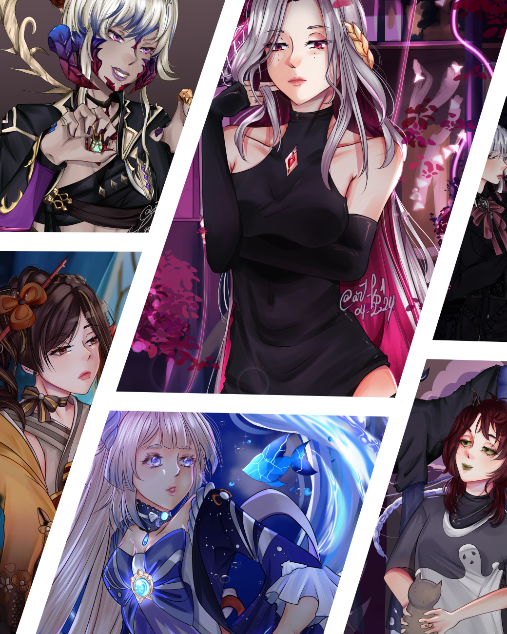 A collection concept and finished designs of characters that were designed by FZ either for personal, commission, or commercial use.